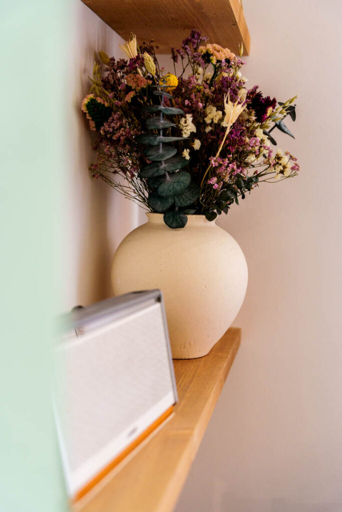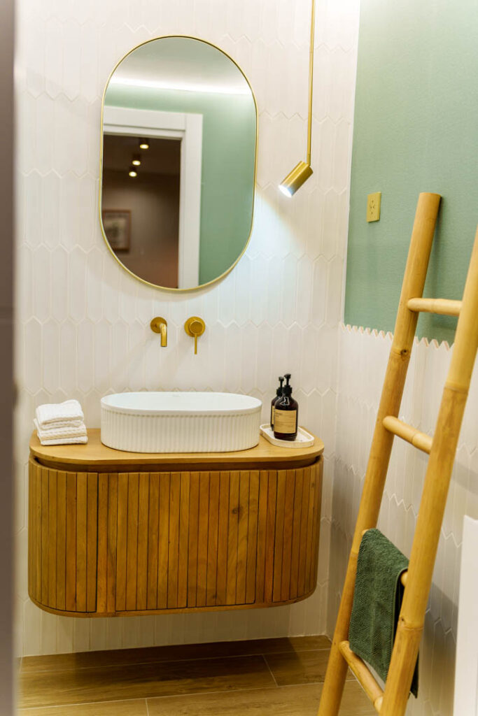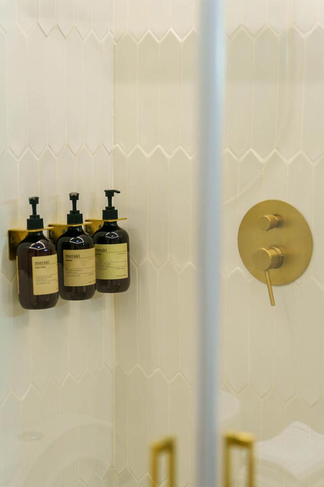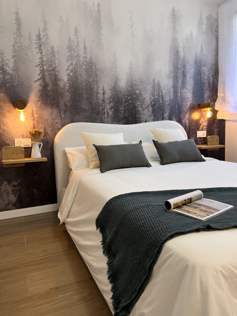El baño está inspirado en la serenidad de la montaña, con ducha efecto lluvia, toallas de calidad y amenities de la marca Meraki.