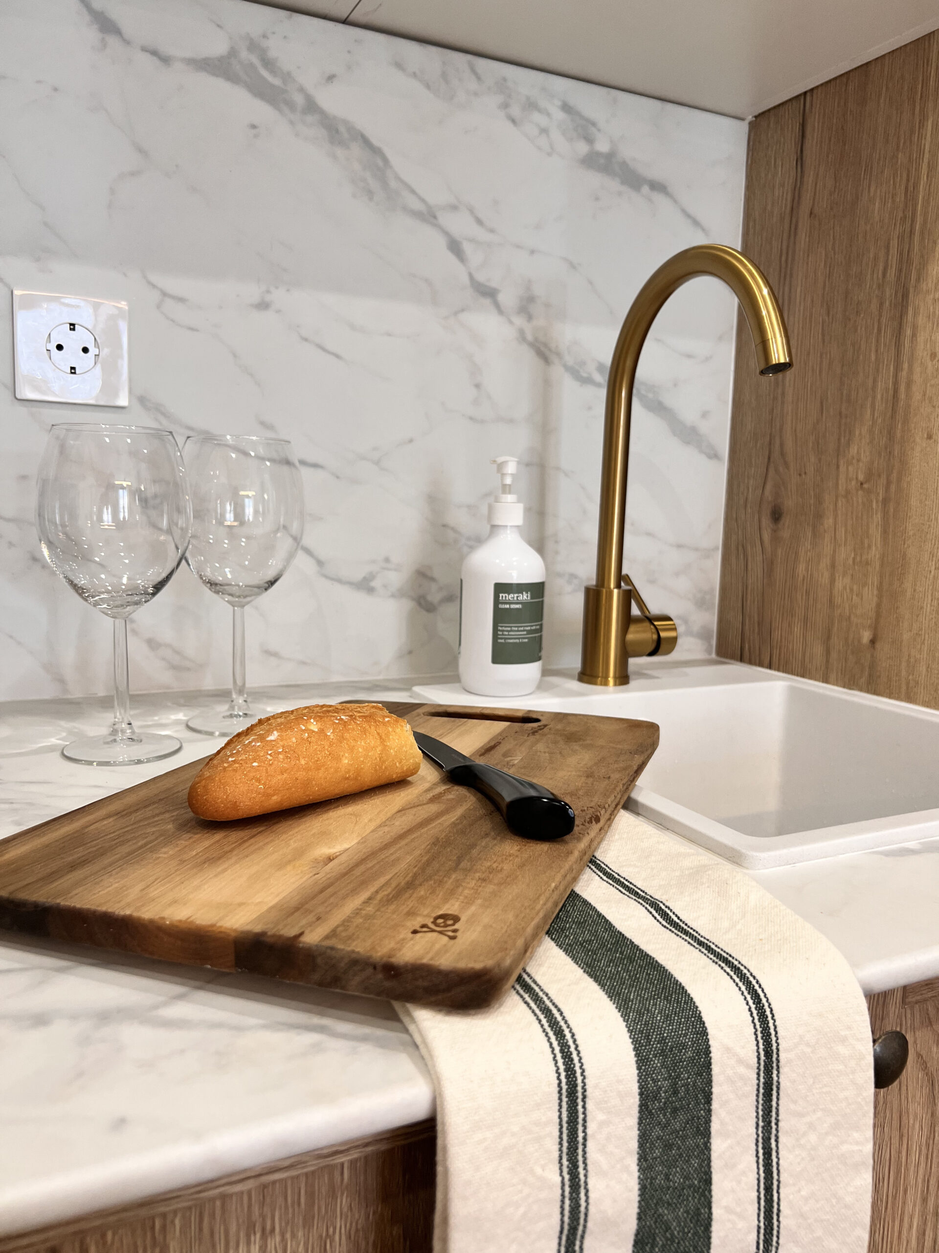 La cocina está completamente equipada con: menaje, nevera-congelador, horno-microondas, lavavajillas, tostadora y cafeteras Nespresso e italiana. Además, incluye básicos como café, azúcar, sal, aceite y especias.